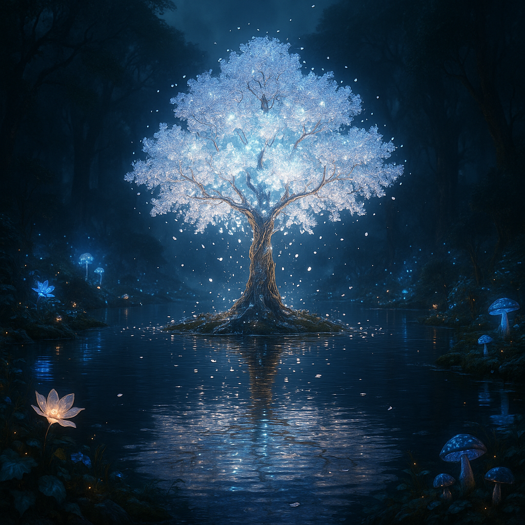 - '움직임’을 암시하는 동사 활용: 프롬프트에 ‘흐르는’, ‘반짝이는’, ‘떨어지는’, ‘김이 나는’, '깜빡이는’과 같은 동사를 포함해 보세요. 예를 들어 위 이미지처럼 '호수 위로 꽃잎이 천천히 떨어지고 물결이 퍼져나간다’와 같은 묘사는 AI가 꽃잎과 물결을 자연스럽게 움직이게 만드는 좋은 단서가 됩니다.